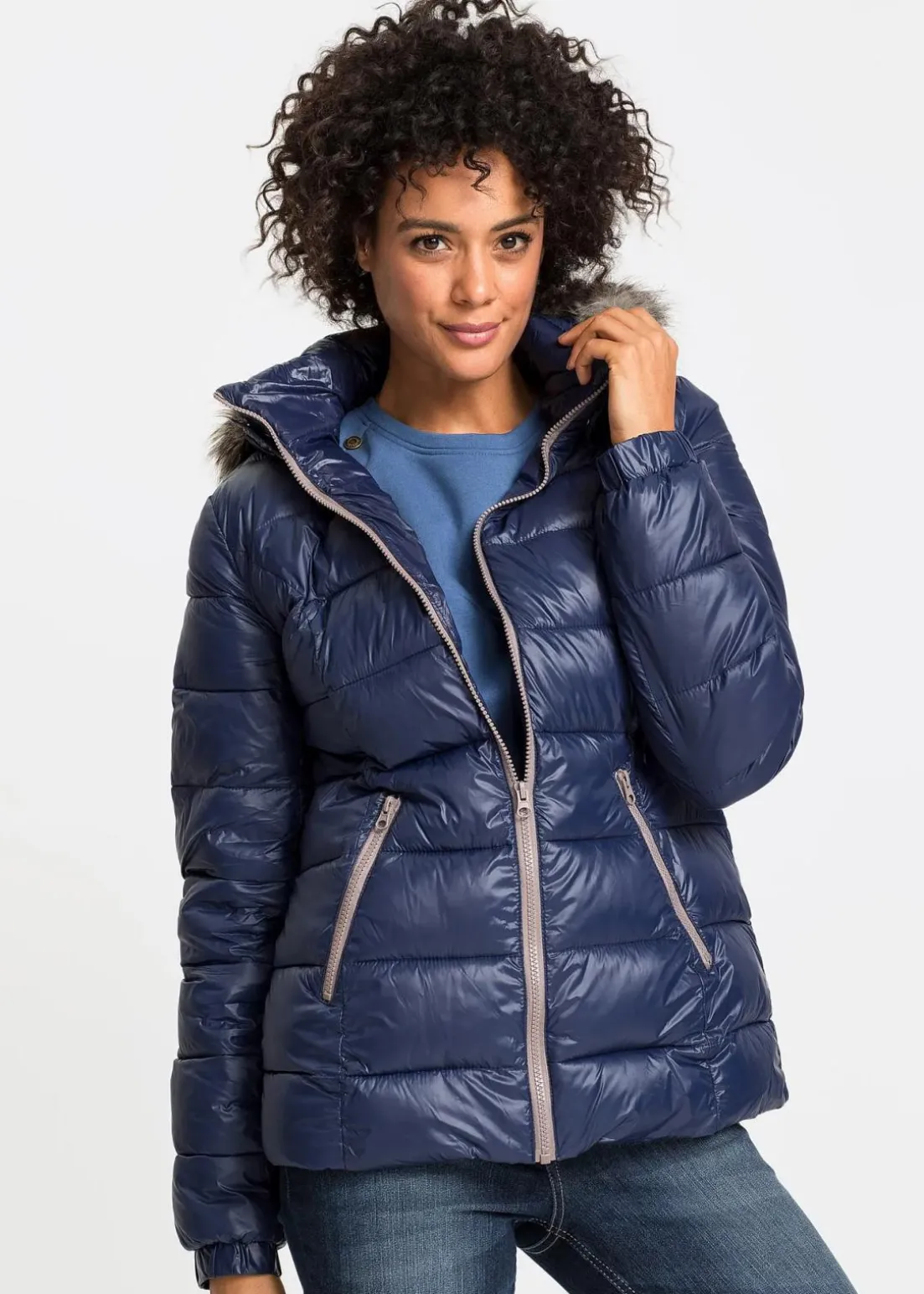 Diese legere Jacke der Marke John Baner ist ein echter Allrounder für den Alltag in der kühlen Jahreszeit.Das weiche Innenfutter und die kuschelige, abnehmbare Kapuze mit Fellimitatbesatz sorgen für ein angenehmes Tragegefühl. Die horizontalen Teilungsnähte sowie die kontrastfarbigen Reißverschlüsse an den Taschen und auf der Vorderseite setzen modische Akzente.