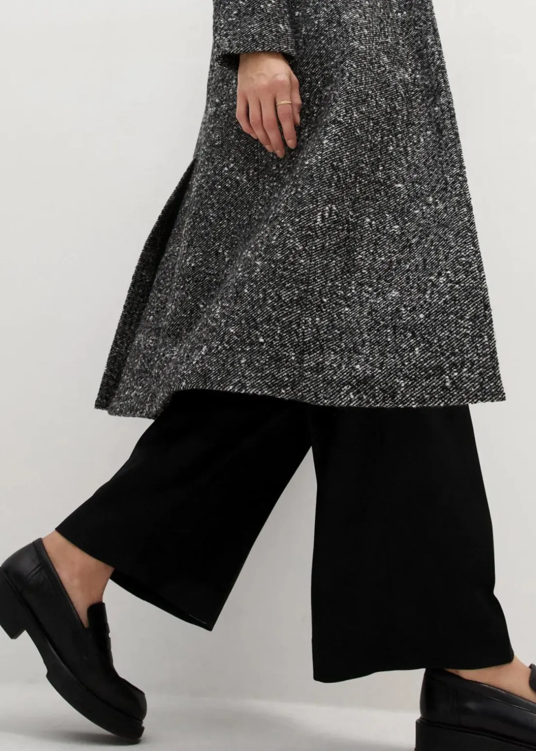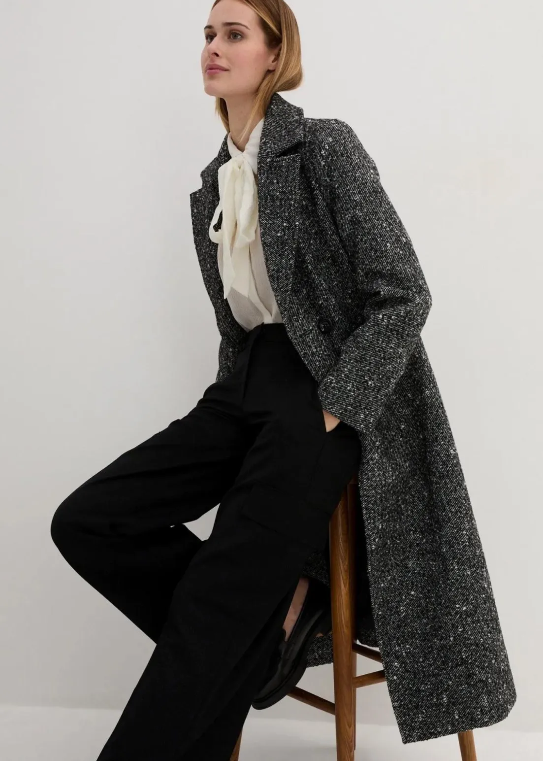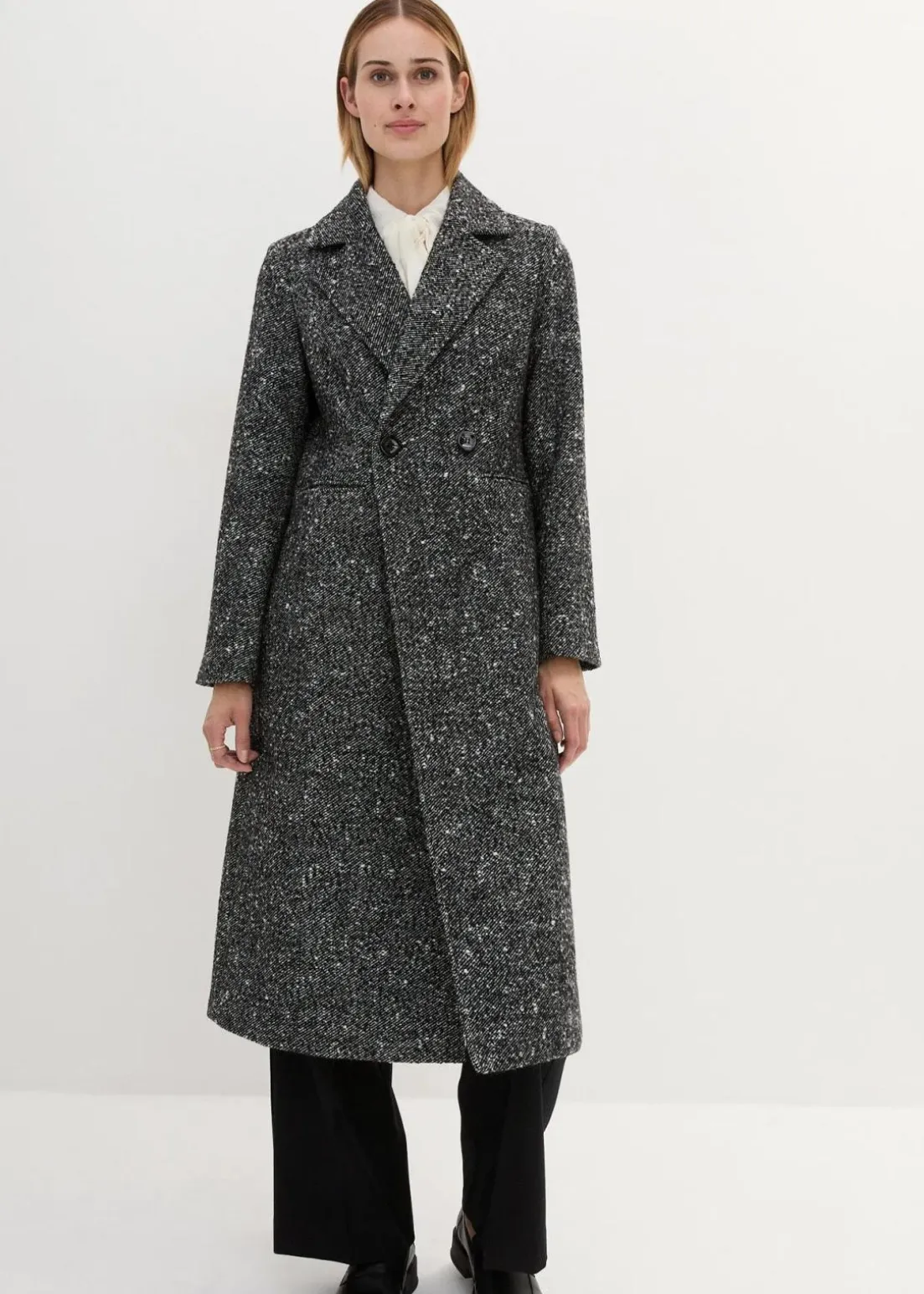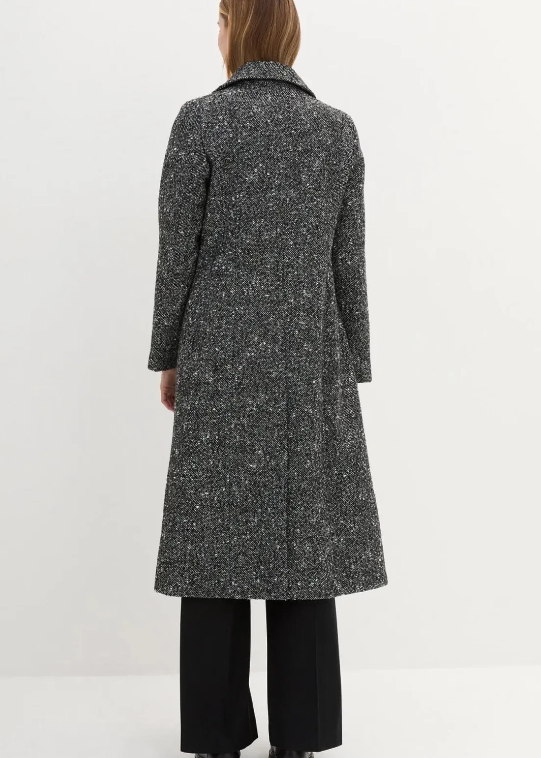 stillvoller Mantel aus hochwertiger Wollmischung in Salz und Pfeffer Optik, doppelreihig geknöpft